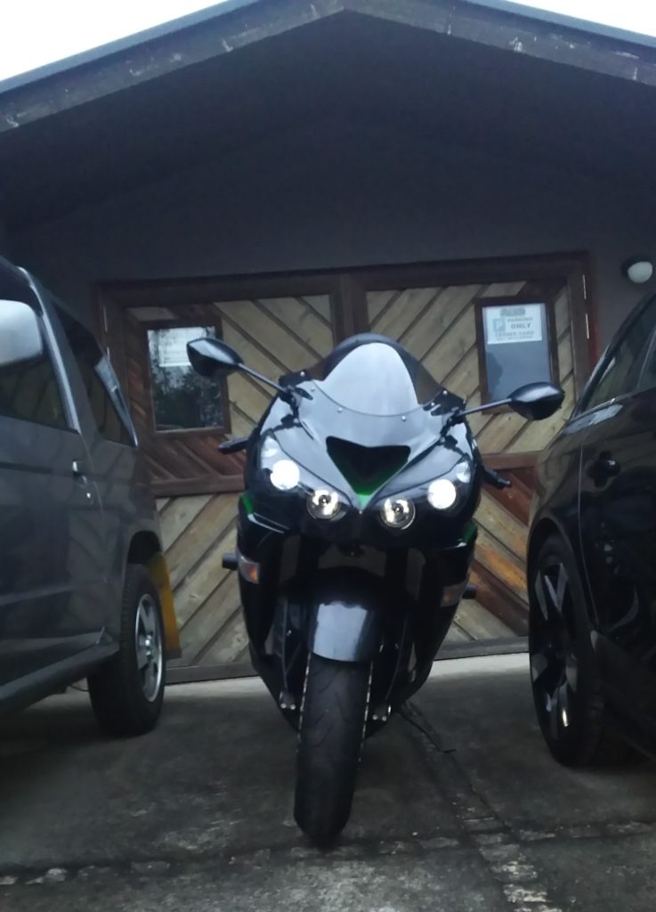 次は、目的地の梅ヶ島温泉です。ここは、結構狭いので混雑すると車を止められなくなりそうですね。我々は特に問題なくバイクを止められました。そして、今回唯一のBMW K1600GTとKAWASAKI ZX14Rとの2ショットです。